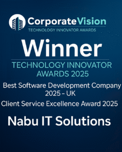 We are thrilled to announce that Nabu IT Solutions has been recognised as the Best Software Development Company 2025 – UK at the Corporate Vision Technology Innovator Awards, alongside receiving the Client Service Excellence Award 2025.